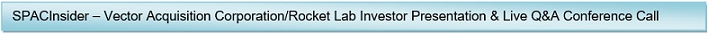 Good afternoon and welcome to the SPACInsider’s live webinar to discuss the business combination between Vector Acquisition Corporation and Rocket Lab. I’m Matt Cianci with SPACInsider. In a few moments the management teams of both Vector and Rocket Lab will give a brief presentation to be followed by a Q&A session.