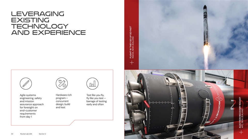 Leveraging existing technology and experience Hardware rich Agile systems Test like you fly, program – engineering, safety fly like you test – concurrent and mission barrage of testing design, build assurance approach early and often and test for foresight on end-customer requirements from day 1 30 Rocket Lab USA Section 2 FLIGHT 19 'THEY GO UP SO FAST' MAHIA, NEW ZEALAND ELECTRON RECOVERY ROCKET APC, NEW ZEALANDLeveraging existing technology and experience Hardware rich Agile systems Test like you fly, program – engineering, safety fly like you test – concurrent and mission barrage of testing design, build assurance approach early and often and test for foresight on end-customer requirements from day 1 30 Rocket Lab USA Section 2 FLIGHT 19 'THEY GO UP SO FAST' MAHIA, NEW ZEALAND ELECTRON RECOVERY ROCKET APC, NEW ZEALAND