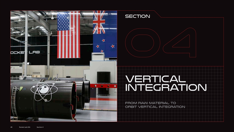 SECTION 04 Vertical integration From raw material to orbit Vertical integration 48 Rocket Lab USA Section 4