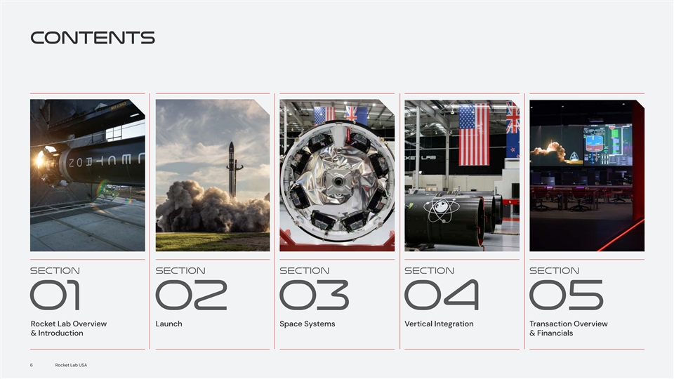 CONTENTS SECTION SECTION SECTION SECTION SECTION 01 02 03 04 05 Rocket Lab Overview Launch Space Systems Vertical Integration Transaction Overview & Introduction & Financials 6 Rocket Lab USA CONTENTS SECTION SECTION SECTION SECTION SECTION 01 02 03 04 05 Rocket Lab Overview Launch Space Systems Vertical Integration Transaction Overview & Introduction & Financials 6 Rocket Lab USA