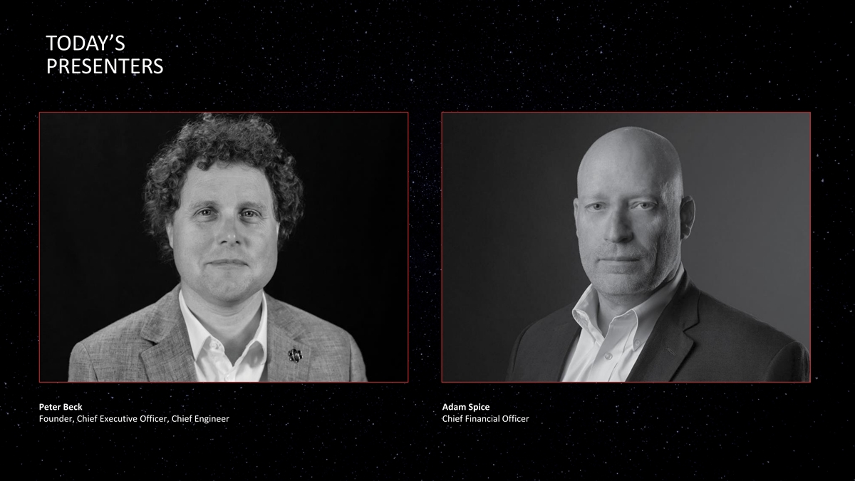 TODAY’S PRESENTERS Peter Beck Adam Spice Founder, Chief Executive Officer, Chief Engineer Chief Financial Officer