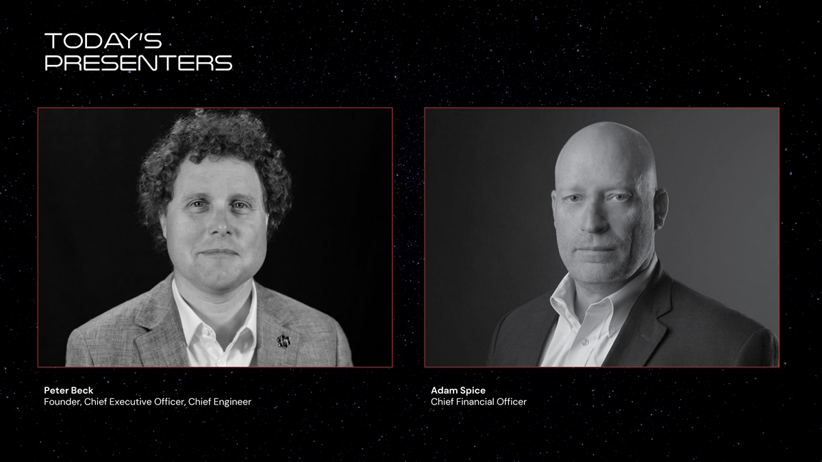 TODAY’S PRESENTERS Peter Beck Adam Spice Founder, Chief Executive Officer, Chief Engineer Chief Financial Officer